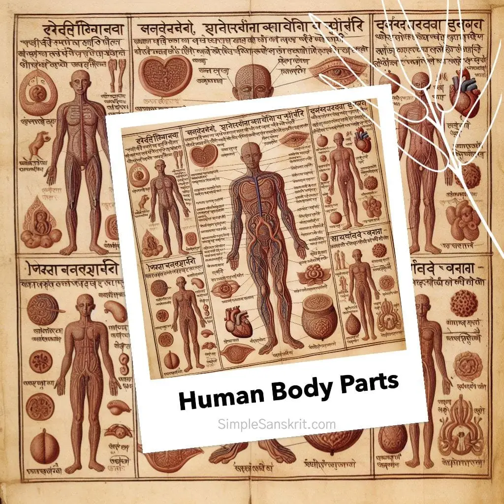 Let’s have a look at some of the important body parts’ names in Sanskrit along with their English and Hindi names.